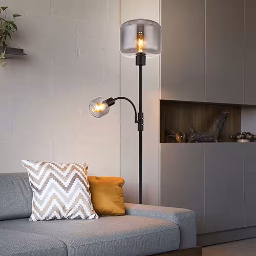 Staande lampen: In een grotere slaapkamer is een vloerlamp met een flexibele arm ideaal. Als je hem vlak naast het bed plaatst, neemt hij iets meer ruimte in beslag, maar je profiteert van een krachtigere lichtopbrengst.