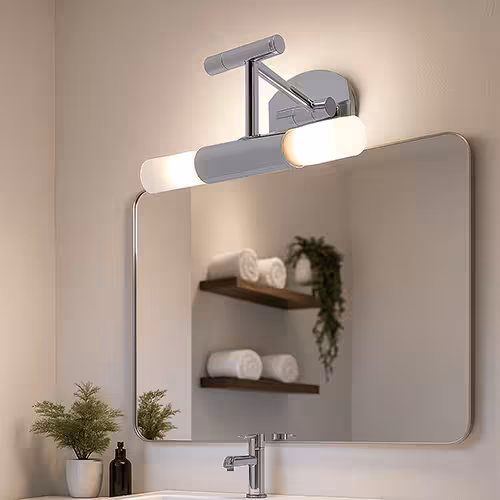 Deze lampen worden links en rechts van de spiegel gemonteerd. Ze creëren een gebalanceerde, schaduwvrije verlichting van beide kanten - perfect voor het aanbrengen van make-up of scheren. Tegelijkertijd creëren ze een visueel kader voor de spiegel.
