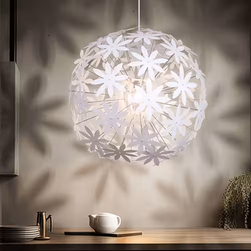 Opvallende en artistieke hanglampen creëren de ideale sfeer in zowel de woonkamer als de slaapkamer. Een ronde hanglamp in een bloemendessin brengt een frisse wind door je vier muren! De witte lampenkap geeft de kamer een zachte en rustgevende sfeer. Of je nu alleen bent of met z'n tweeën - met deze lamp creëer je een plek om te ontspannen.