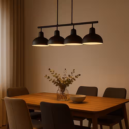 Hanglampen eetkamer: Hanglampen boven de tafel creëren structuur in de kamer. Ze definiëren de eetruimte visueel en zorgen voor gericht licht. Modellen met meerdere lichtbronnen zijn bijzonder geschikt voor lange tafels.