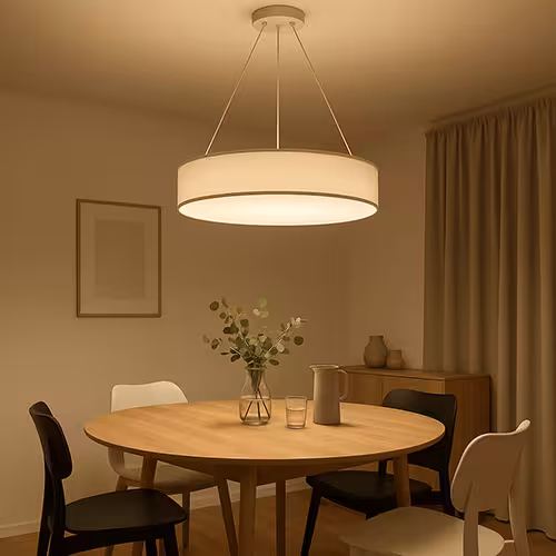 LED eetkamerlampen: LED technologie maakt verschillende lichtkleuren en stemmingen mogelijk. Veel modellen kunnen worden gedimd of aangepast met slimme bediening.