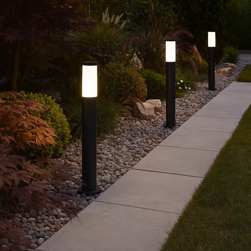 Paalarmaturen zijn compacte armaturen die meestal tussen 30 en 120 cm hoog zijn. Ze staan vrij in buitengebieden - langs voetpaden, opritten of rond de tuin. In tegenstelling tot wandlampen hebben ze geen stevige basis op het huis nodig. Ze worden rechtstreeks op de grond of op een fundering bevestigd. Het licht schijnt meestal naar beneden of opzij - niet-verblindend en efficiënt.
