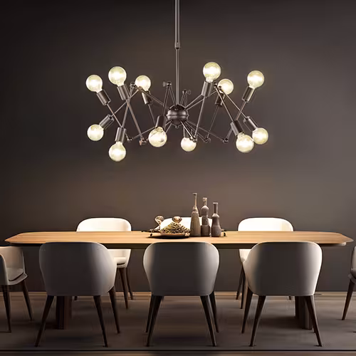 Deel van een doordacht verlichtingsconcept - zones creëren met metalen pendelarmaturen