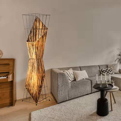 Houten vloerlampen: natuurlijk materiaal, perfecte stijl