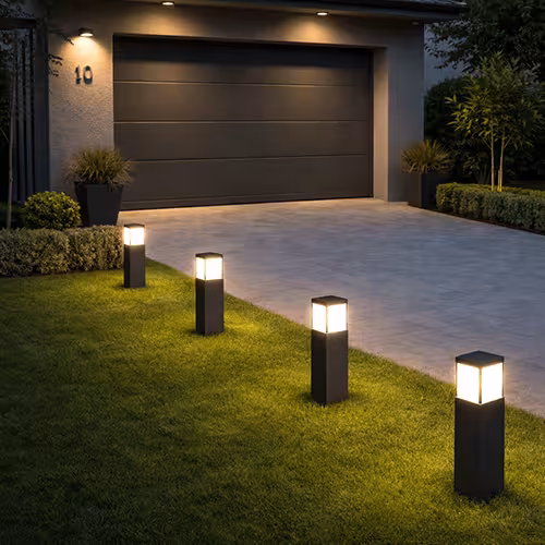 De route naar de carport is cruciaal voor veiligheid en gemak. Looplamparmaturen markeren dit gebied duidelijk.